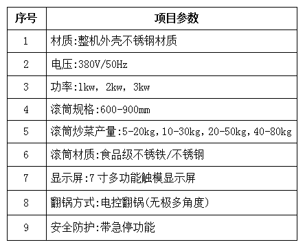 半自動GB系列(無菜譜錄制、自動烹飪功能)炒菜機參數